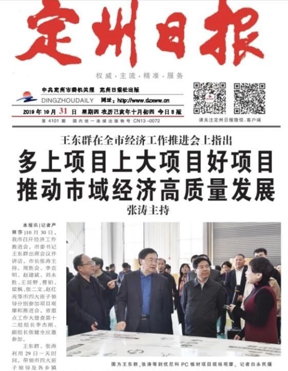 2019年10月29日下午四點(diǎn),省重點(diǎn)工作督查組領(lǐng)導(dǎo)、定州市市委書記王東群、市長(zhǎng)張濤、及市各級(jí)領(lǐng)導(dǎo)、定州市觀摩團(tuán),一行蒞臨河北優(yōu)尼科塑膠制造有限公司(以下簡(jiǎn)稱河北優(yōu)尼科)參觀考察工作,公司徐瀾總經(jīng)理代表公司熱情接待了市組織領(lǐng)導(dǎo)。